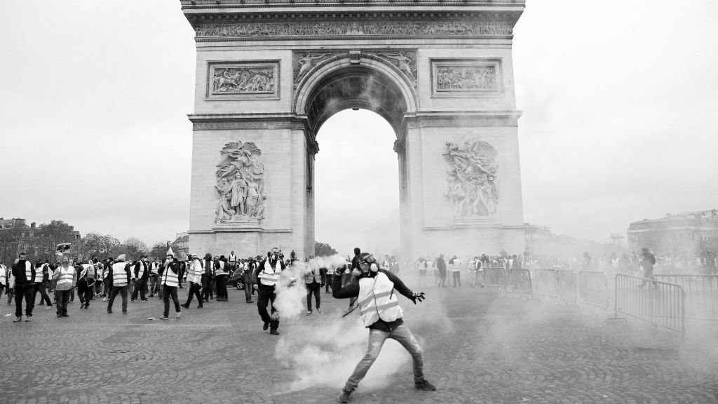 En efecto, es difícil predecir qué seguirá. Pero lo cierto es que Macron ya fue derrotado en la calle poco menos de un mes después de la apoteosis geopolítica que fue la conmemoración a los 100 años del armisticio de la Primera Guerra Mundial. El discurso que dio atestiguó eso. Como nos dijo un señor en la calle: «vengo de sentir miedo solo, ahora ellos también van a tener que sentir miedo, vamos a mostrar de lo que somos capaces». Que fue respondido por un CRS sin mayores rodeos, frente a frente, mirándose a los ojos con otro manifestante: «si quieres seguir vivo, vuelve a casa». Todo puede suceder, incluso nada. No se puede predecir el desenlace de esta pieza que se desarrolla en actos al mismo tiempo continuos, pues son siempre los sábados, y discontinuos, pues hay una semana entre cada acto. Lo que pasa es que en ese explosivo tiempo presente que aplasta el horizonte con un peso infernal sobre todos los individuos, no hay como proyectar algo más allá. Lo que queda es la ambigüedad de la improvisación. Una improvisación teatral en la que no está todavía claro lo que se está representando. De hecho este interregno temporal es vivido como una pesadilla por todos. El cineasta Philip Garrel, como todo gran artista, parece tener una buena intuición sobre el momento. Al final de una sesión de Les Amants réguliers, cuando se le pidió hacer una comparación entre el momento actual y 1968, el asunto de la película, dio con un diagnóstico de la época: antes era esperanza (espoir), ahora es desesperación (désespoir).